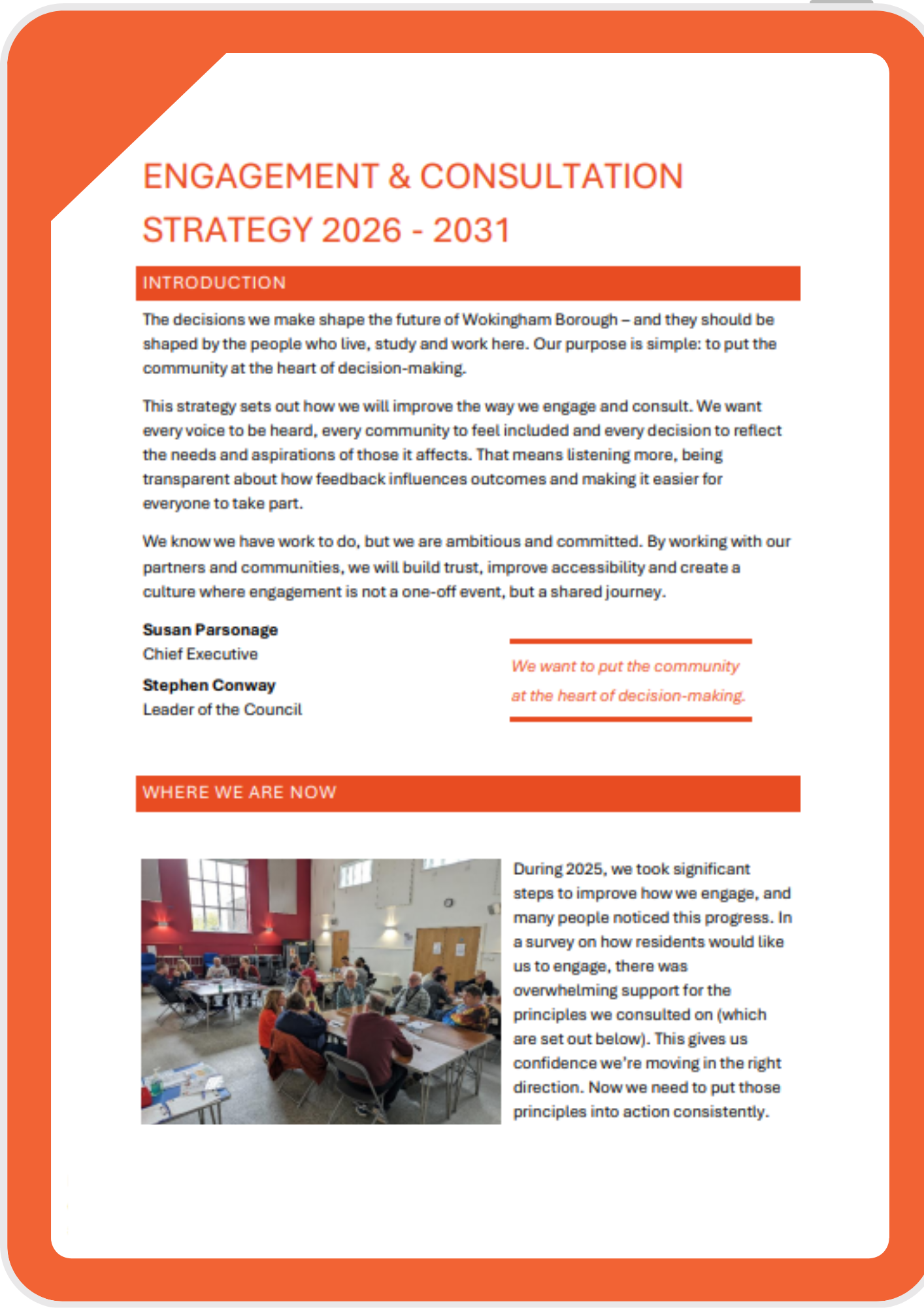 We’re committed to putting residents at the heart of our decision-making so that, together, we can create a thriving Wokingham Borough.